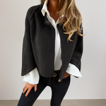 Intemporel et moderne à la fois, le manteau Andréa™ séduit par sa ligne douce, légèrement cintrée, et son modèle ouvert qui se pose avec élégance sur un chemisier ou un col roulé. Ses épaules tombantes sculptent une allure décontractée mais soignée, tandis que ses gros boutons décoratifs sur le haut et ses côtés subtilement raccourcis signent une silhouette résolument contemporaine — parfaite pour la mi-saison et les journées plus fraîches.