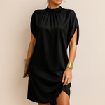 Élégante, fluide et terriblement flatteuse, cette Robe Tunique Noire Chic sublime votre allure avec sa coupe droite moderne. Son col froncé façon col montant allonge le port de tête, tandis que les manches fendues type cape dévoilent subtilement les bras pour une touche sophistiquée. Sa matière douce au tombé soyeux glisse sur la silhouette et accompagne chacun de vos pas – parfaite pour un dîner, un cocktail ou une soirée d’été.