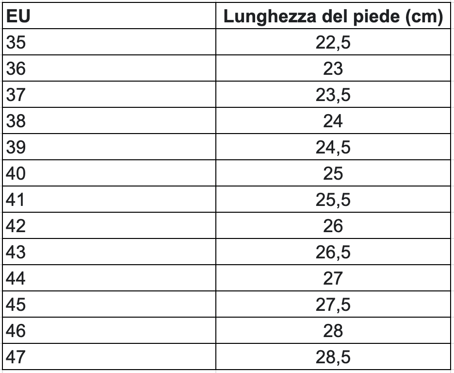 Lunghezza del piede (cm) |